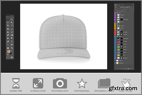 Snapback Cap with Sticker Mockup helps you to apply your amazing designs. Are made in such a way that you can easily add your artwork using the provided layers, precise masks and special smart objects. Just drag and drop it to a Smart Object. It’s incredibly simple to use. The template is made in such a way that you can easily change the color of your individual parts. And to add your artwork using the provided layers, precise masks and special smart objects. Allow you to customize the entire look of the kit. The high resolution of this mockup (4.000 x 3.000 pixels) allows it to be used for commercial purposes. Replace invaluable time and expensive photosessions with this mock-up to get what you need in minutes. Highly detailed and incredibly simple to use. Handy for professional commercial and also freelance or even personal presentations. View the product screenshots for more details. Enjoy the outstanding quality!