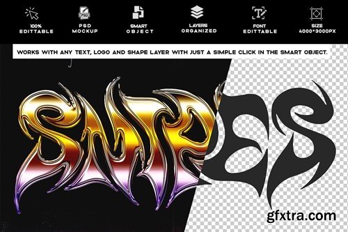 最优中文翻译为:"Y2K 峰值铬文本效果 PSD 模板 TMG5YGU"