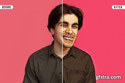 Cartoonize Photo Effect This action is designed to transform your pictures into Caricature Effect. I recommend using the action on photos (1000 px – 3000 px) resolution to get the best results. The filters are so versatile and work with a lot of different pictures like fashion, lifestyle, blogging and even moody product shots. Files Included: Purchase without any hesitations & Enjoy!