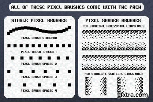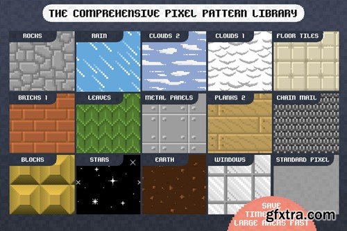 Create 8-bit inspired art and type in Adobe Illustrator with this handy, retro tool kit! Inspired by retro game graphics from the 1980s and 1990s, such as those made famous by the iconic Atari, Spectrum, Sega and Nintendo consoles, this complete tool kit contains everything you need to create your own pixel art. Full of useful shortcuts, this is one of my most fun and innovative packs to date. It features pixel brushes and patterns, which together allow the user to make their own 8-bit, 16-bit and 32-bit inspired art quickly and easily. I've thoroughly enjoyed developing this pack and I'm sure you are going to love it too - grab it now and unleash your inner retro artist! This useful tool kit contains the following elements: Pixel Brushes: A trusty, go-to pixel outline brush - Draw multiple pixels with one stroke and save time! Versions with varied spacing have also been supplied. Purpose-built shaders - Supplied in horizontal and vertical brush varieties. Decorative Pixel Brushes - Designed for creating varied pixel textures and stunning backgrounds.All brushes are Adobe Illustrator vector brushes. A Pixel Pattern Library: Save time by flooding areas with pixel texture quickly and easily with the Illustrator patterns. This means you don't need to waste time drawing backgrounds and large areas and it makes creating detailed scenes a doddle. Because the patterns are seamless, you can fill any size area. Recoloring is quick and easy too. Supplied in 45 varieties including rocks, tiles, bricks, clouds, earth, wood and more. Example File: The mix tape design and arcade type have been supplied for you to backwards engineer. All Adobe Illustrator brushes and patterns are live so, it's easy to see what settings were used. Please note: these are for personal use only. A Handy Cheat Sheet, full of time-saving tips: I spent ages experimenting with this tool kit and wanted you to benefit from the knowledge I gained, so I've collated my top ten tips in one helpful PDF. A Quick Reference Guide: Navigate through the Illustrator brushes, graphic styles and patterns featured in this extensive pixel tool kit easily using this handy PDF. A Comprehensive Instruction Manual: A very thorough guide on how to use the vector brushes, graphic styles and Illustrator patterns is supplied. IMPORTANT! Pixel Perfect creates 8-bit inspired art which is designed to emulate pixel art. It does not produce the technical definition of 8-bit art. The brushes, patterns and styles are subject to the same restrictions as other pixel-based brushes and are subject to anti-aliasing at very small sizes, if exported in bitmap formats. This product is compatible with Illustrator CS6 and CC only (including the latest version).
