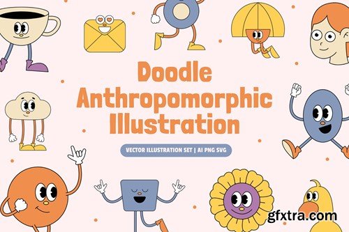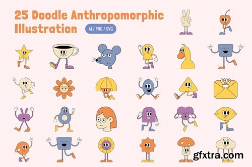 Give your designs a blast with these Doodle Anthropomorphic Illustration Set! This collection features 25 elements of hand-drawn illustrations. This collection is perfect to spice up your project and make it stunning for sure. It’s ready to use! You can customize the colors and make a difference. This illustration best suits marketing materials, icons, posters, branding, social media, and more. You can mix and create an eye-catching design using our pre-made illustrations and patterns. All elements are available as AI, SVG, and PNG. NOTE: PNG file clipart format - image with transparent background that can be used on any background. PNG and JPG are more efficiently used with Adobe Photoshop and other raster programs. EPS, AI, and SVG are more efficiently used with Adobe Illustrator and other vector programs. =================================================== POSSIBLE IMPLEMENTATIONS Personal design elements YOU WILL GET