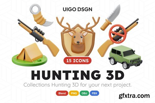 15 ready-made Hunting 3D Icon file objects for Websites, Mobile Apps, and more. Enhance your designs with 3D Assets.
