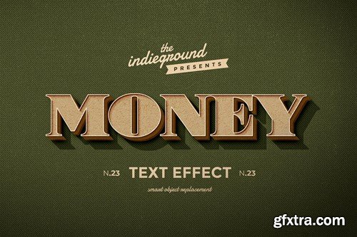 Retro Vintage Text Effect N.23 - Money “Simple & 3d Retro Effect” – This graphic resource gives you a quick & easy possibility to apply an high quality retro / vintage / old style to your text. You can use it on simple text, shapes and vector logo. You just need to replace them into the smart object. Create a great poster or flyer, a facebook cover, a magazine title or a website banner and give them the vintage touch. Features *1 Psd File *Smart Object Replacement *2000×1500 px *300 dpi / RGB *Well Organized Layers *100% Editable