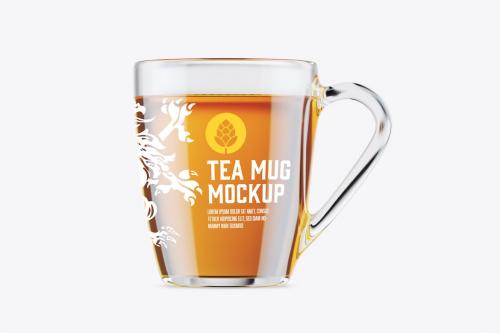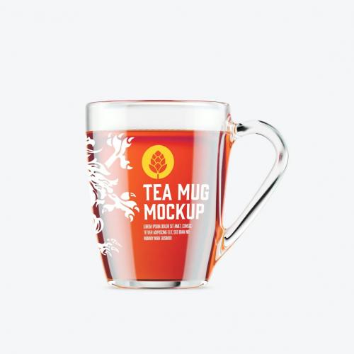 Clear, glass, tea, mug, handle, drink, relax, label, 3D, mockup