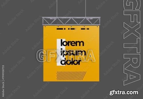 Front View of Hanging Exhibition Banner Mockup 799938733