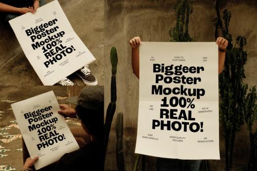 A minimalist handling big poster mockup with earth-tone vibes to make it more classy and elegant.