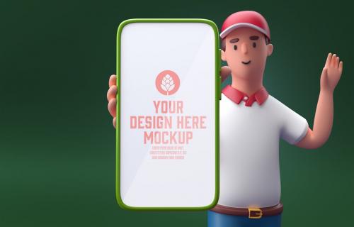 Deliveryman with Smartphone Mockup