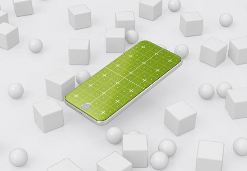 Scene with Mobile and Colorful Cubes Mockup