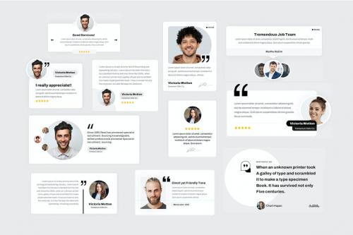 This template is ideal for showcasing endorsements, ratings, reviews, and quotes. It is offered in Photoshop PSD, XD, and Figma formats. It has vector block format callout, rating, and blockquote capabilities. Perfect for companies looking to display client testimonials or event planners who want to highlight participant evaluations. Its professional yet basic design enhances its credibility and attractiveness, making it easy to adapt to any project.