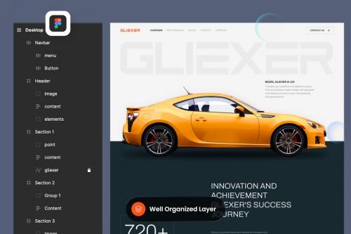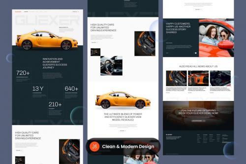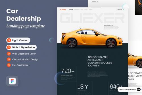 This is our new product called Gliexer. It's 1 page web design for Car Dealership Landing Page. Concept is easy to edit, customize, and resize, because of vector shapes, and very well organized layers.