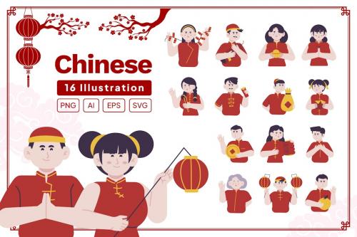 * Male characters doing Chinese New Year activities by giving red envelopes angpao