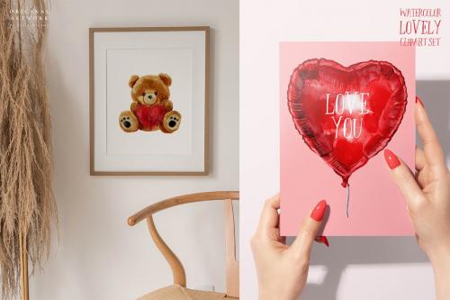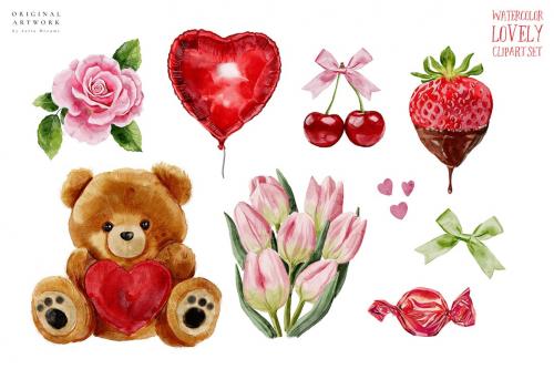 Set of 9 High Quality Illustrations from Lovely Clipart Set Valentines Day