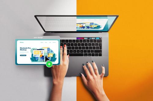Macbook Pro 16" with Woman Hands Typing Mockup
