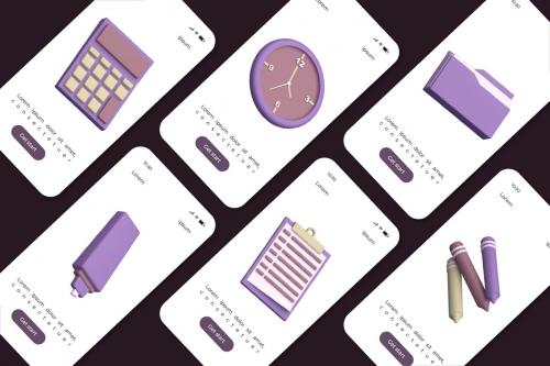 学校用品3D图标包