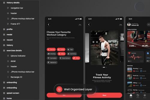 Introducing our cutting-edge fitness tracker mobile app UI design – an intuitive and sleek product crafted to elevate your fitness journey. With a user-friendly interface, this app seamlessly integrates into your daily routine, providing real-time data on your physical activity, heart rate, and sleep patterns.