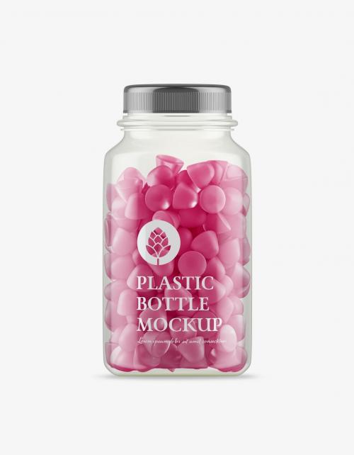 Plastic Jar with Gummies Mockup