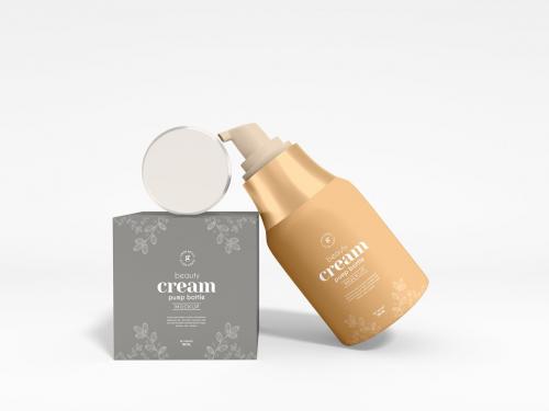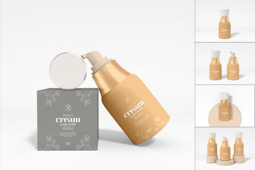 **Introducing Our High Resolution and Easy to use Cosmetic Beauty Cream Pump Bottle Packaging Mockup Set, expertly crafted to showcase your packaging designs for beauty product bottles, moisturizer containers, and cosmetic box packaging. This mockup collection provides an ideal platform for presenting your skincare product designs with a realistic and professional touch. Elevate your packaging endeavors to display your plastic, cosmetic, pump, bottle, packaging, mockup, cream, makeup, and container concepts.**