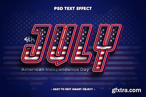 USA 4th July Editable Text Effect We are glad to present you this set of Unique High-quality USA 4th July Editable Text Effect. Perfect for celebrating Independence Day with a patriotic and 3D design. This American-themed text effect brings the national pride and festive spirit of July 4th to your projects. Express your feelings with a bold, flag-inspired typography that is fully editable, making it ideal for any celebration or design related to our great country. We made these Mockup files easily editable using Photoshop's smart objects feature, you can easily replace your design and Background color to create your preferred look in a matter of seconds. These files are highly customizable so that you can create different looks of your choice. Simply Follow the User Guide (PDF) FEATURE FILE INCLUDES If you have any questions feel free to contact us.