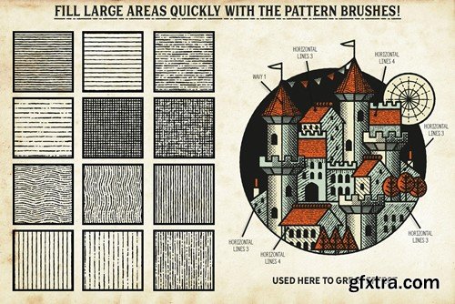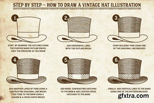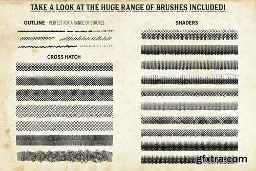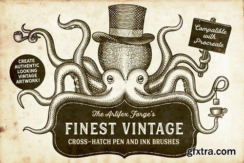 Our best-selling vintage brushes are finally available for Procreate! This complete vintage illustration tool kit features a huge variety of Procreate brushes and Procreate patterns, including hatch and crosshatch marks, time-saving Procreate pattern brushes and real vintage paper parchments. Use these vintage Procreate brushes to emulate authentic-looking vintage engraved, etched and pen and ink artwork. Here's just a few of the many reasons to grab this vintage Procreate brush set: +Sourced from real vintage artwork and engraving patterns - helping you achieve maximum authenticity. +A huge range of Procreate brush strokes is included - Including a Procreate pattern brush set so, you'll always find the correct one for the task in hand. +Customize the look - layer the brush strokes and Procreate patterns and give yourself even more hatching options. +Time-saving pre-layered shading brushes - pre-layered hatch brushes are supplied for when you're in a hurry. +Fill areas quickly with the Procreate pattern brush set - See how time-saving Procreate pattern brushes streamline your workflow! +Multiple Line Brushes - you can draw multiple lines with just one stroke, saving you loads of time (for more accurate art, use the single outline brush)! Join the thousands of artists, designers and hobbyists already using Finest Vintage brushes and start creating your own authentic looking vintage art in Procreate today! The pack contains all of these fantastic components: 38 Procreate Brushes An all-purpose Outline brush - perfect for creating a range of marks. 7 Cross Hatch Brushes. 10 Shaders - with these layered brushes, the hatching is ready layered, saving you time. 6 Diagonal Line Brushes. 5 Horizontal Line Brushes. 8 Vertical Line Brushes. An Eraser Brush. For use with the Procreate eraser. 12 Procreate Pattern Brushes Save time and fill large areas with vintage line texture in seconds. Featuring horizontal and vertical lines, cross-hatch and wavy lines. All patterns are seamless. 4 Authentic Paper Parchment Textures Sourced from real vintage papers, these authentic parchments are the perfect base for your design. Supplied as 4000 x 5000 px Tifs. A quick reference guide This will help you quickly find the right Procreate brushes and Procreate pattern brushes, for the task in hand. Instructions A very thorough guide on how to load and use the Procreate brushes and parchment papers is supplied.