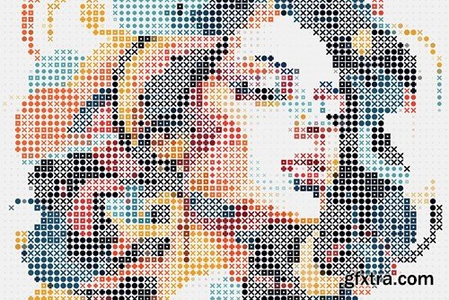 Introducing a brand new Photoshop action that transforms your images and illustrations into stunning mosaics with ease! Unleash your creativity by choosing from six unique styles, each available in two distinct versions, ensuring a total of 12 mesmerizing effects. Whether you’re working with high-resolution photos or small-sized images, our plugin guarantees results up to 4000 pixels in width. This amazing tool will let you add a modern touch to your designs. The action utilizes a variety of shapes to create the mosaic. These shapes represent the bright and dark areas of the original image. In one of the styles shapes representing dark areas are larger, while those representing light areas are smaller. This ensures visual balance in the mosaic. By combining these shape arrangements, the action generates the mosaic version of the original image. The result is visually stunning and captivating. 6 different mosaic styles: Choose from a variety of styles to match your creative vision, Two versions for each style: Each style comes with two unique versions; a light and a dark option High-resolution output: The actions create 4000 pixels wide mosaics, perfect for printing Small image support: Even if your source images are small, Multi Mosaic can create 4000 pixel wide results. You can even use 80px wide images.