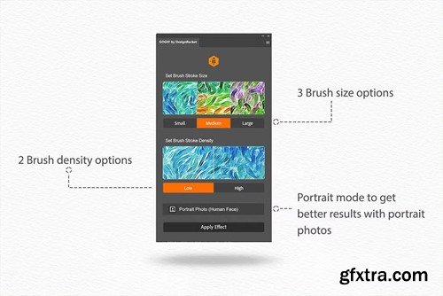 Unleash the artist within and transform your photographs into masterpieces with “GOGH!”, the innovative Photoshop plugin that reimagines your images with the timeless beauty of oil paintings. With a suite of customizable brush strokes and densities, “GOGH!” offers control over the artistic process, allowing you to fine-tune your creations to perfection. Key Features: Customizable Brush Strokes: Choose from small, medium, or large sizes to match the scale and detail of your subject. Adjustable Brush Densities: Opt for a subtle or bold effect with low or high density settings. Portrait Mode: Specially designed to enhance the human face, ensuring your portraits are picture-perfect.