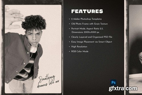 Transform your digital photos into timeless treasures with our Old Photo Frame Template. This meticulously designed template captures the essence of vintage photography, featuring intricate detailing and a classic, aged aesthetic. Perfect for adding a nostalgic touch to your family photos, historical images, or creative projects, this template brings the warmth and charm of yesteryears to your modern designs. Authentic Vintage Design: Exquisite detailing and realistic aging effects to give your photos a genuine old-time look. High Resolution: Crisp, high-quality template ensures your photos look stunning in any format. Features: Please note! The model images and photos are for presentation purposes and not included
