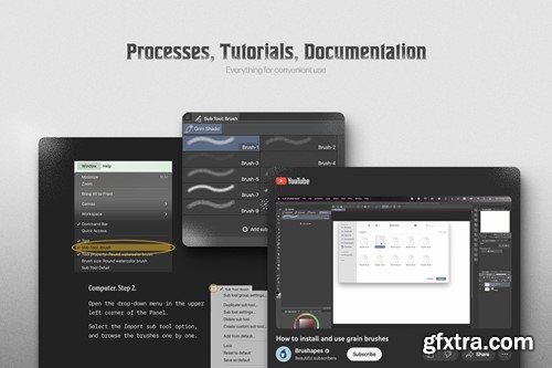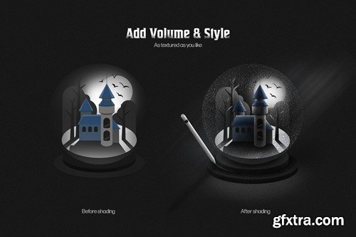 Grim Shader Brushes for Clip Studio Paint enable an artist to smoothly add a texture to an object, whether they want it subtle or intense. It includes 10 brushes applicable in various techniques, from flat art to complex 3D illustrations, as nothing will beat them in terms of adding volume or setting the forefront, medium plan, and background inside the image.