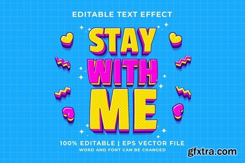 Stay With Me Vector Editable Text Effect opens the AI or EPS file, just click the text, and edit the word and font, according to your wishes, it's very simple and you get the best font effect. Features : 100% vector format Easily editable colors Scalable size without losing the quality Well-organized layers Ready to use file High quality and resolution File Included : Ai File EPS File JPEG File Readme File