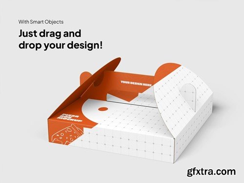 Introducing the Pizza Box Mockup – not your average pizza box! This innovative design features a built-in handle, making it more convenient than ever to carry your food on the go. Whether you're transporting a piping hot pizza, a stack of sandwiches, or even bakery goods, this box offers versatile use beyond the classic pizza delivery. Its unique, multifunctional design sets it apart from traditional pizza boxes, adding practicality and a fresh take on food packaging. Fully customizable, this mockup allows you to change every design aspect from the top, sides, and even the handle of the box. Thanks to smart object layers, you can seamlessly add your branding or promotional designs in just a few clicks. The background color is also changeable, giving you complete creative control to align the packaging with your brand’s color palette. For any food business looking to elevate their packaging, this pizza box mockup is a game-changer. With its versatile design, eye-catching look, and easy-to-carry handle, it's the perfect fit for restaurants, bakeries, or even food trucks. Show off your creativity and take your packaging to the next level! Features: Included in Package: Note: The images provided are solely intended for preview purposes and are NOT included in the downloadable files.