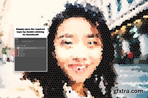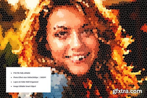 About the Products ------------------------- Introducing my new product Mosaic Art Photo Effect In the zip file, you will find the instruction change text or logo via Smart Object and download links for some free fonts that I used in this presentation. Thanks for your interest in my previous text effect products and I always try to create original and unique products for you. Now I am introducing the most glamorous product of me of all time. It is equipped with precise realistic details and aesthetical look. It is so easy and ready to use, just type what you want. Go for this Mosaic Art Photo Effect look for all your text and logo’s in seconds! Features and Benefits ------------------------- All texts are editable: You can edit all the texts. These styles work on any text and font perfectly. Usable in 300DPI projects: These styles work perfectly with 300DPI projects. You can also use these styles for print projects. Clean and orderly layers: All layers are properly named and categorized. So with a quick look at the layers, you can find what you are looking for. It only works with Adobe Photoshop. Smart Object - 5000x3000 pixels