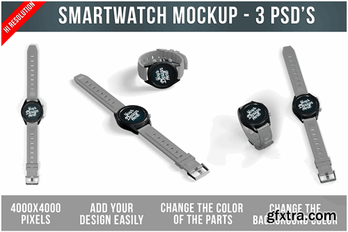 elevate your design game with our Smartwatch Mockup, a versatile tool crafted to seamlessly integrate your stunning designs. The PSD file is designed for easy customization, featuring dedicated layers, precise masks, and smart objects. Key Features: -Easy Application: Simply drag and drop your artwork onto the Smart Object—it’s that simple. -Color Customization: Effortlessly change the colors of individual parts of the mockup to suit your creative vision. -Background Options: Customize the background color to complement your design aesthetic. Which files will you receive: -3 PSD file -PDF Guide: Included for a smooth and hassle-free user experience, providing insights into maximizing the mockup’s potential. Technical Specifications: -High Resolution: With dimensions of 4.000 x 4.000 pixels, this mockup is suitable for commercial use, saving you valuable time and costs compared to photoshoots. Important Notes: -Preview Images: The images used are solely for preview purposes. Designs and fonts showcased are for presentation only and are not included in the download. Explore the detailed product screenshots for a closer look. Enjoy unparalleled quality in your design presentations!
