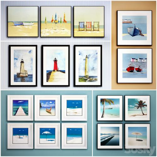 Composition of the collection: Art gohome 052023-052024: sand, boat, umbrella, sun bed, the beach and the sea. Art gohome 052131A, 052132A, 052133A: boat, sea, sand, pier, jetty, stylization. Seegart S15020301: lighthouse, drawing, sky, shore. XD010: photo frame, picture, picture, sky, boat, paradise, sand, clouds. Art gohome 002172A, 002173A: Frame palm tropics. Art gohome e1032, e1033: Frame pier, water, umbrella, sun. Decorative pattern can be used as wall decor living room, kitchen, nursery, hallway or