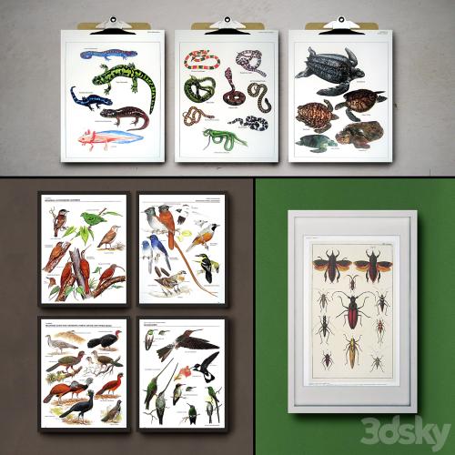 Creator: My Sunshine Vintage Models: - Bee Hives and Bugs - White Crested Laughing Thrush, Chestnut Tailed Minla, Common Babbler - Water bug, Beetle, Grasshopper - Green Anole, Forest Iguana, Collared Lizard, Commom Iguana - Leatherback Turtle, Green Turtle, loggerhead - Spotted Salamander, Tiger Salamander, Marbled Salamander, Pacific Giant Salamander - Bullsnake, Smooth Snake, Vine Snake, Common Kingsnake - Eastern Coral Snake, King Cobra, Eastern Green Mamba, Banded Sea Snake - Rubber Boa, Anaconda, Carpet Python, Boa Constrictor - Tree Frogs - Turtles Vintage 1984 Animals Book Plate - African Broadbill, Lesser Green Broadbill, Wedge Billed Woodcreeper, Common Miner - African Paradise Flycatcher, Black naped Blue Monarch, Yellow Breasted Boatbill - Egyptian Plover, Northern Lapwing, Common Pratincole, Cream Colored courser - Hummingbirds - Andean Hillstar, Giant Hummingbird, Collared Inca, Glowing Puffleg - Lesser Swallow Tailed Swift, Palm Swift, Violet Sabrewing, White Tipped Sick lebill - Mallee Fowl, Plain Chachalaca, Great Curassow, Australian Brush Turkey, Spruce Grouse - Mimic Meliphaga, Yellow Wattlebird, Noisy Friarbird, Blue Faced Honeyeater - Pallas' Sandgrouse, Wood Pigeon, Rock Dove, Black Bellied Sandgrouse, Laurel Pigeon - Secretary Bird , Crested Caracara, Barred Forest Falcon, American Kestrel, Falcon - White Eyed River Martin, Tree Swallow, Purple Martin, White Backed Swallow - Walking Sticks, Praying Matids, Water Beetle Tags: Vintage Bird Print, school charts, Book Plate, Cabinet of Natural Curiosities, Reptiles botany, poster, painting, book page, sheet, clamp, suspension, tablet, frame, animals, school drawing classroom, blackboard, biology, fauna, study, bird zoo, tropical, beetle, lizard, turtle, snake, cobra, frog, toad, a swallow, a goal s, anaconda, python, reptile