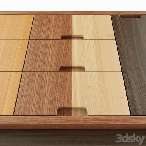 Chest of drawers made of solid wood from four factories De La Espada. Model for smoothing, but can also be used without it (7500 polygons) Dimensions WxHxD: 185cm * 75cm * 50cm. Manufacturer: http://delaespada.com/products/036m-tone-cabinet/ textures, materials included.