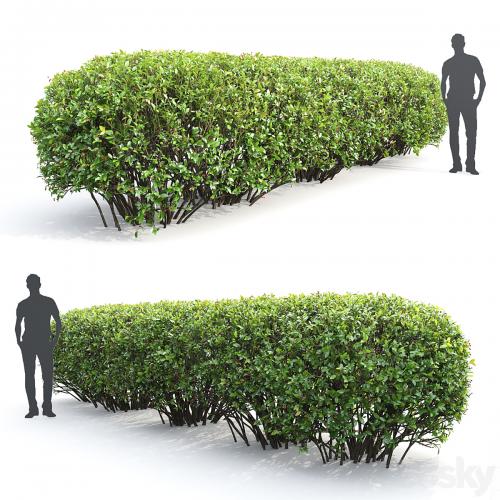 By applying the bend modifier it is easy to get a curved hedge shape, as in the preview example.