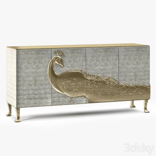 http://www.bykoket.com/guilty-pleasures/casegoods/camilia-cabinet.php Designed passionately and exquisitely by the incomparable talents powering KOKET, the Camilia Armoire was created to grace the most regal of dining rooms with its elegance and splendor . Inspired by the aristocratic palaces of the Alexandrian pashas of Egypt, the mother of pearl Camilia is crowned by artisan hand-carved peacock, meticulously engraved and delicately Finished in metal leaf. W. 182 cm / 71 in D. 48 cm / 18,7 in H. 90 cm / 35,1 in The model is based on the original manufacturer dimensions. Materials and groups are named the same, as the model. Instance geometry, one multi-submaterial for model for easy change or setup. Lowpoly geometry for turbosmooth. Object at 0.0.0, clean and light scene.