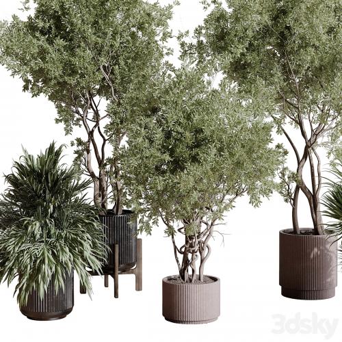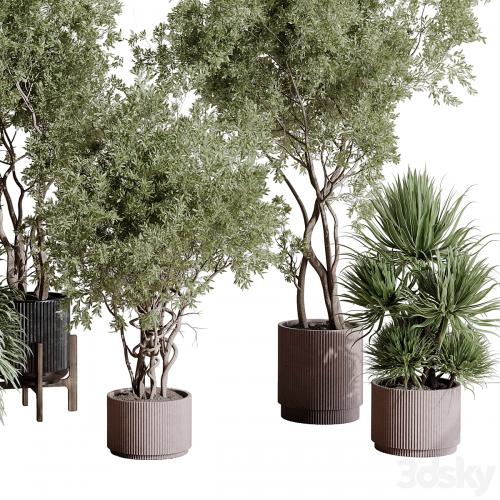 indoor plant set 408 plant tree palm bush concrete dirt vase vray