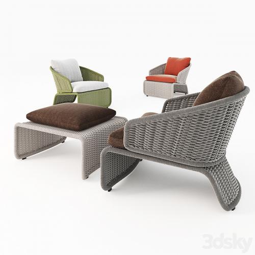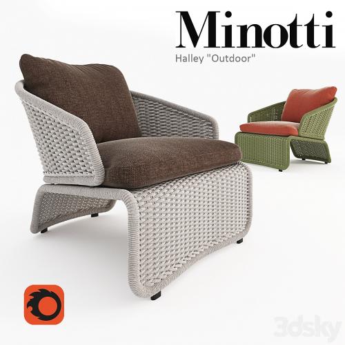 Halley Outdoor Chair by Minotti A family of chairs for outdoor use that echoes the visually striking design of the eponymous indoor armchair. Dimensions: armchair - 75х80х78 cm, pouf - 70х58х38 cm The archive includes an armchair and pouf in three versions of fabric. Https://www.minotti.com/en/halley-outdoor_2