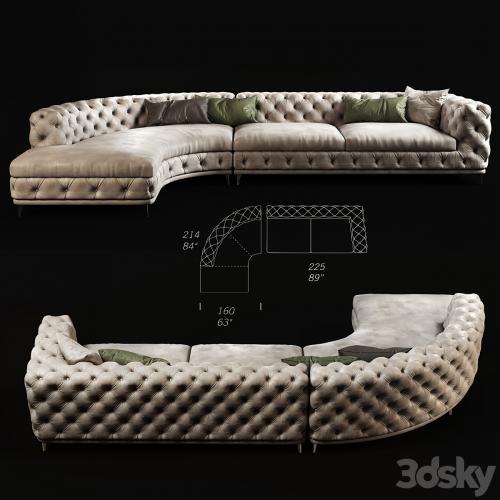 Aston is a leather sofa with soft upholstery capitonne, which is a modern version of refined English Chesterfild technology thanks to such elements as soft linear shape and chrome-plated legs with several finishing options.