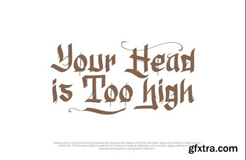 Ralforya Font is a bold and striking typeface that channels the essence of Gothic black letter styles with a distinct metal-inspired artistic flair. This font seamlessly merges the rich history of medieval calligraphy with a modern edge, creating a visually captivating and powerful typographic statement. What’s in the package : Thank you