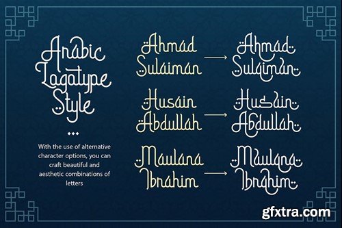 Introducing Arabic Calligraphy font, a script font meticulously crafted to emulate the elegant curves and strokes of Arabic lettering. This font exudes an aura of the Arab world, perfect for those seeking a typeface with Islamic themes, tailored for Muslim communities and Ramadan-related designs. Arabic Calligraphy is designed for individuals and businesses in search of a font that captures the essence of Islamic artistry, ideal for various design needs, from product branding to creative projects.” Files Include :