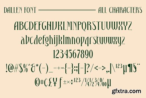 Dallen Font: Making a Statement in Display Typography Striking Height and Bold Design Dallen’s tall and bold serif design commands attention with its striking appearance. Each character stands tall, making a bold statement in any display setting. Designed for Display Needs Crafted specifically for display purposes, Dallen excels in grabbing the viewer’s attention. Its tall stature and eye-catching design ensure that your message is conveyed with maximum impact. Versatility in Application While ideal for display, Dallen offers versatility in its application. Whether used in branding, posters, or headers, its bold and prominent appearance adds flair to any design project. Stand Out with Dallen In summary, Dallen is the go-to choice for designers seeking a serif font that demands attention. With its tall shape and striking presence, it ensures that your display projects stand out from the crowd. Step into the world of Dallen and make your message heard loud and clear. What you get : Features : If you have any inquiries or need assistance, please feel free to contact us. We appreciate your support in enhancing your creative projects! Best regards, Craft Supply Co.