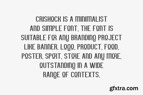 Crishock Font is a Minimal and authentic display font. The font is suitable for any branding project like poster, logo, sport, and many more. Outstanding in a wide range of contexts. Included