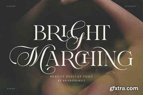 Introducing Bright Marching Beauty Display Font. Bright Marching is a elegant and stylish display serif and script with rich stylistic alternates, best used as a display for headings, logos, branding, magazines, product packaging and invitations. Bright Marching equipped with Ligature and many Alternates and come with clean lines and smooth curves give any project an extra touch of class. What you get: Thank you.