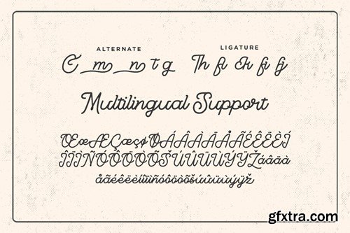 Introducing "Cafieln" - a vintage monoline font that encapsulates the timeless charm of retro design with its elegant and nostalgic aesthetics. With its smooth and consistent lines, "Cafieln" brings a sense of nostalgia and sophistication to any project. Each character is carefully crafted to evoke the essence of vintage typography, making it perfect for branding, packaging, signage, and more. Embrace the classic appeal of "Cafieln" as it effortlessly enhances your designs. Whether you're creating vintage-inspired logos, elegant invitations, nostalgic posters, or charming social media graphics, this font will captivate your audience with its timeless and versatile style. Step into a world of vintage elegance with "Cafieln" and let your designs evoke the nostalgia of yesteryears. Features: – Uppercase – Lowercase – Symbols & Punctuation – Numeral – Ligature – Alternate – Multilingual Support File Included: – Cafieln ( OTF, TTF, WOFF, WOFF2 )