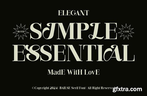 Bailse Serif tend to have fine serif details and well-proportioned proportions. Subtle serif details provide a classic touch without overly framing it. The balanced and proportional proportions of the characters create a neat and orderly impression. Moderate letter height ensures good readability without sacrificing aesthetics. The character can have a slight curve to add softness to the overall look. This font is suitable for use in titles, main text, or other large text in designs that prioritize a formal and classic impression. Bold Decorative Font with a Relaxed Feel Bold decorative fonts with a relaxed feel feature strong boldness, providing clarity and boldness in the message they want to convey. However, the character's style still gives a relaxed and friendly impression. There may be decorative details inspired by nature or other organic elements, such as leaf elements, flowers, or shapes inspired by the everyday environment. This adds warmth and playfulness to the overall design. This font can be used to highlight important elements, make a strong statement, or add an interesting accent to an overall design. By combining these two font types, you can create an interesting contrast between the elegance of an elegant serif and the relaxed boldness of a decorative font, creating a design that is unique, elegant, and eye-catching. availlable