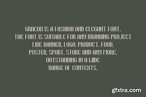Gracox - Sans Serif & Luxury Font Font is unique . Ready to use for your design like labeling, movie sceen, poster, movie title, gigs, album covers, logos, and much more. Included