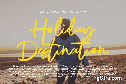 Hafine Brush is a typeface with personality. You can use it as a logo, badge, insignia, packaging, headline, poster, etc The alternative characters in this font were divided into several OpenType features such as Stylistic Alternates, Stylistic Sets, and Ligature. The OpenType features can be accessed by using OpenType program such as Adobe Illustrator, Adobe Photoshop, and Adobe InDesign. Files included: Hafine Brush.TTF Hafine Brush.OTF Thank you!