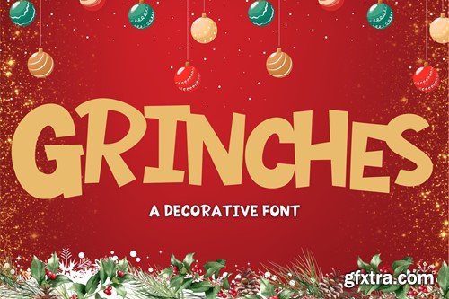 Grinches is a display font. It embodies playfulness and authenticity and is the perfect choice for all your favorite projects such as blog posts, logos, branding, ads, invitations, greeting cards, planners, photo albums, decorations, and more. Add it to any of your designs, and enjoy the results! Zip file contains: