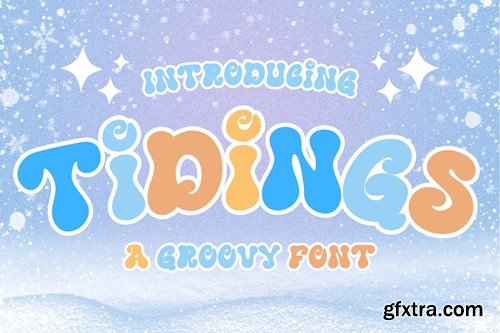 Tidings is a retro groovy display font. It embodies playfulness and authenticity and is the perfect choice for all your favorite projects such as blog posts, logos, branding, ads, invitations, greeting cards, planners, photo albums, decorations, and more. Add it to any of your designs, and enjoy the results! Zip file contains: